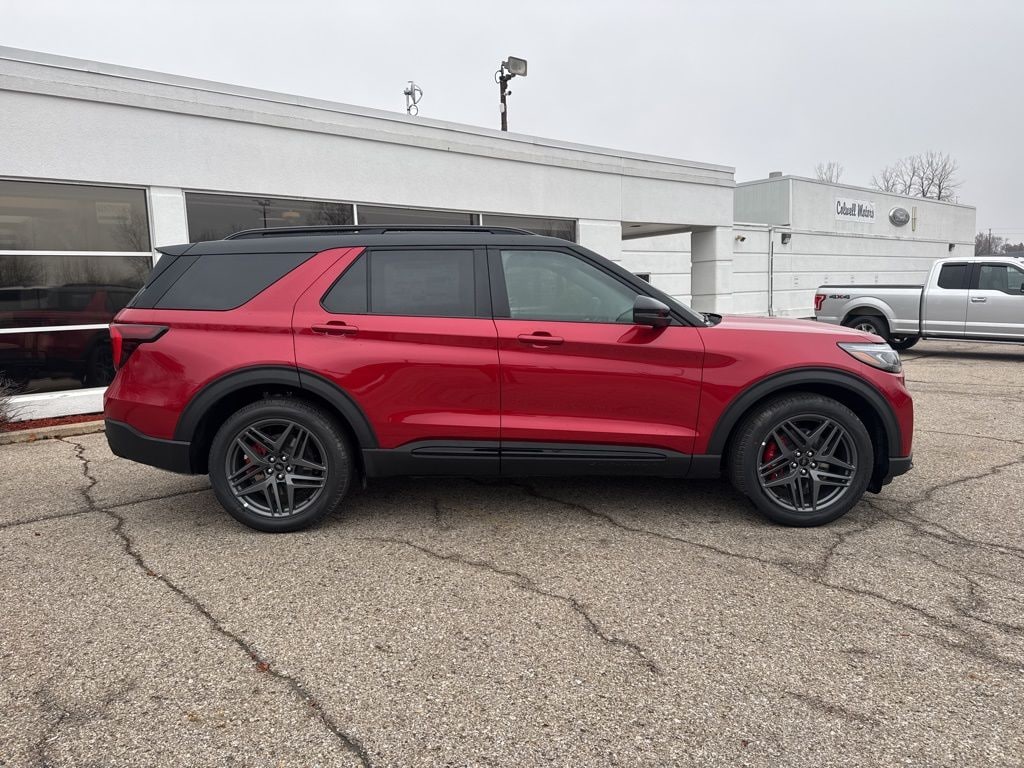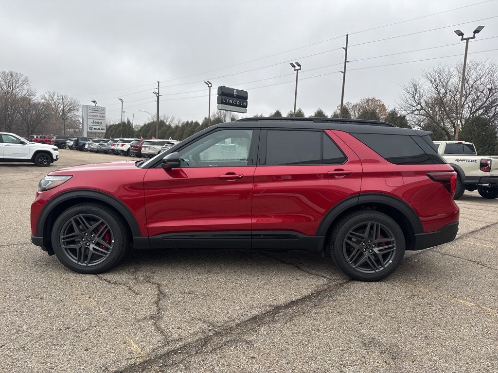 Red Metallic 2025 Ford Explorer ST 4WD 10-Speed Automatic 3.0L EcoBoost V6 FREE VEHICLE HISTORY REPORT, **FREE AT HOME DELIVERY WITHIN 60 MILES**, **ASK ABOUT SCHEDULING A VIRTUAL APPOINTMENT OR ONLINE VEHICLE WALK AROUND**.